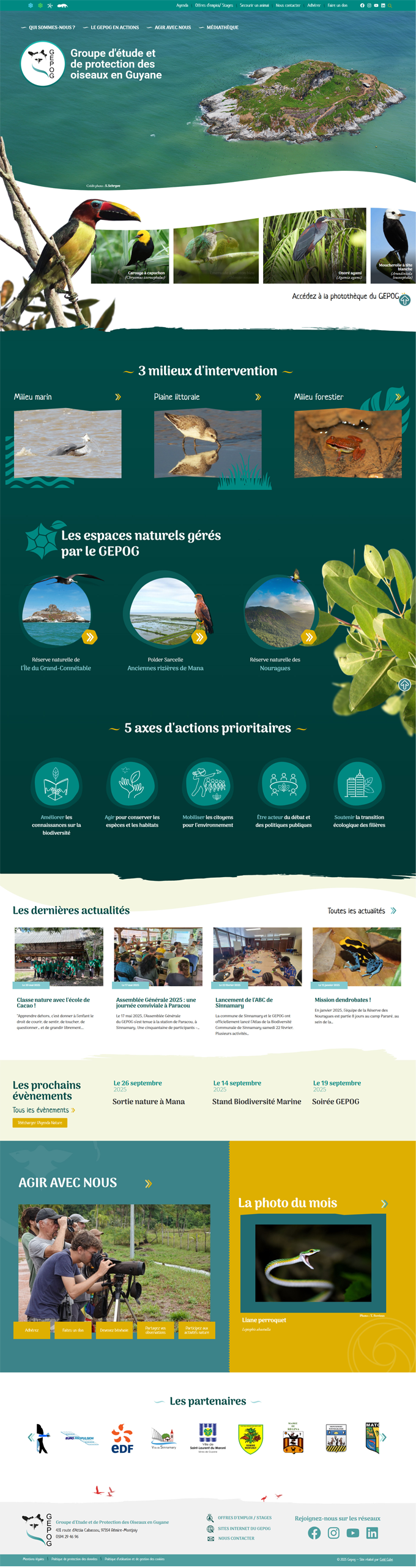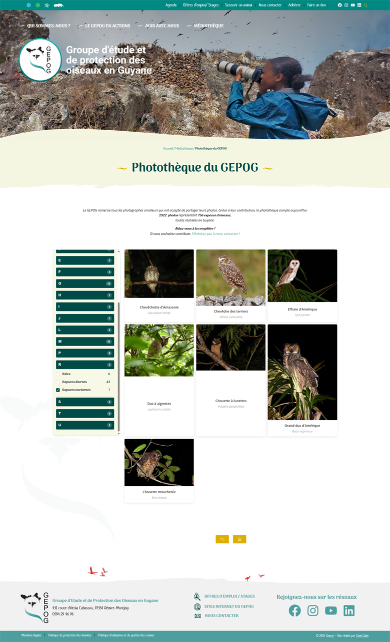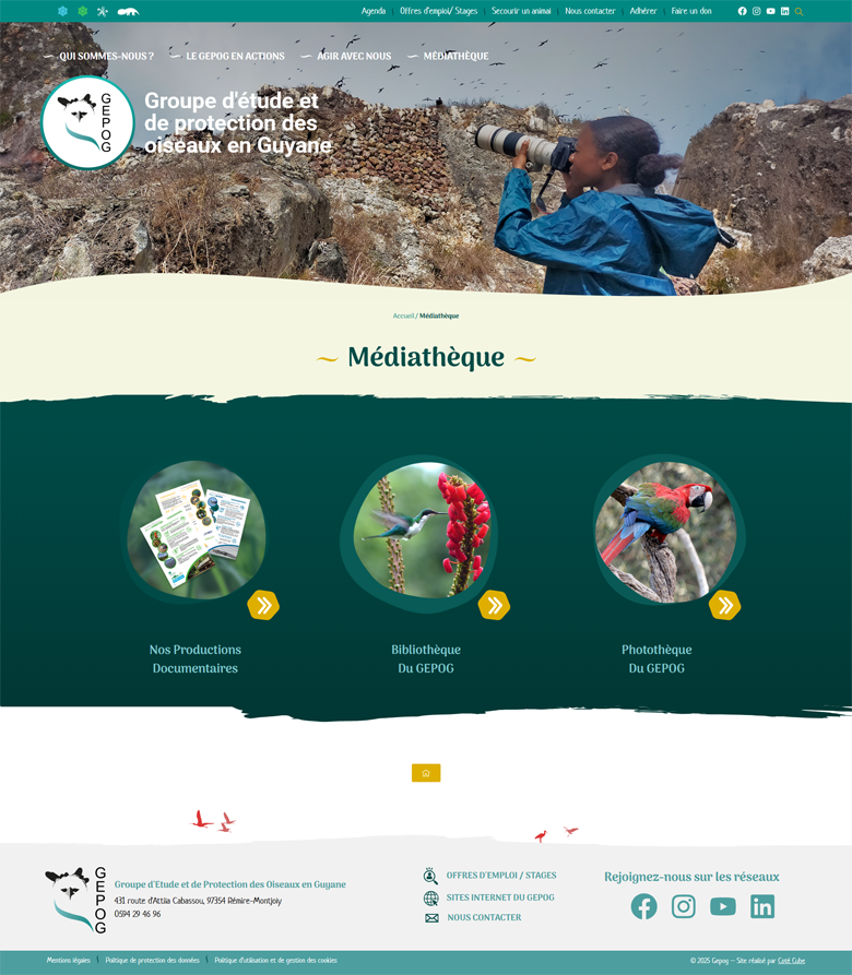 Le GEPOG, association dédiée à la protection et à l’étude des oiseaux en Guyane, souhaitait moderniser son site internet afin de mieux refléter la richesse de la biodiversité locale. L’objectif : proposer une plateforme plus actuelle, claire et accessible, à destination de deux publics.